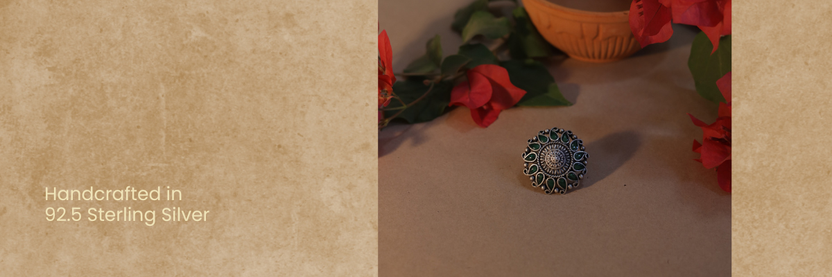 Nayra Essential Phool Ring with Green Stone Nayra Essential Phool Ring with Green Stone