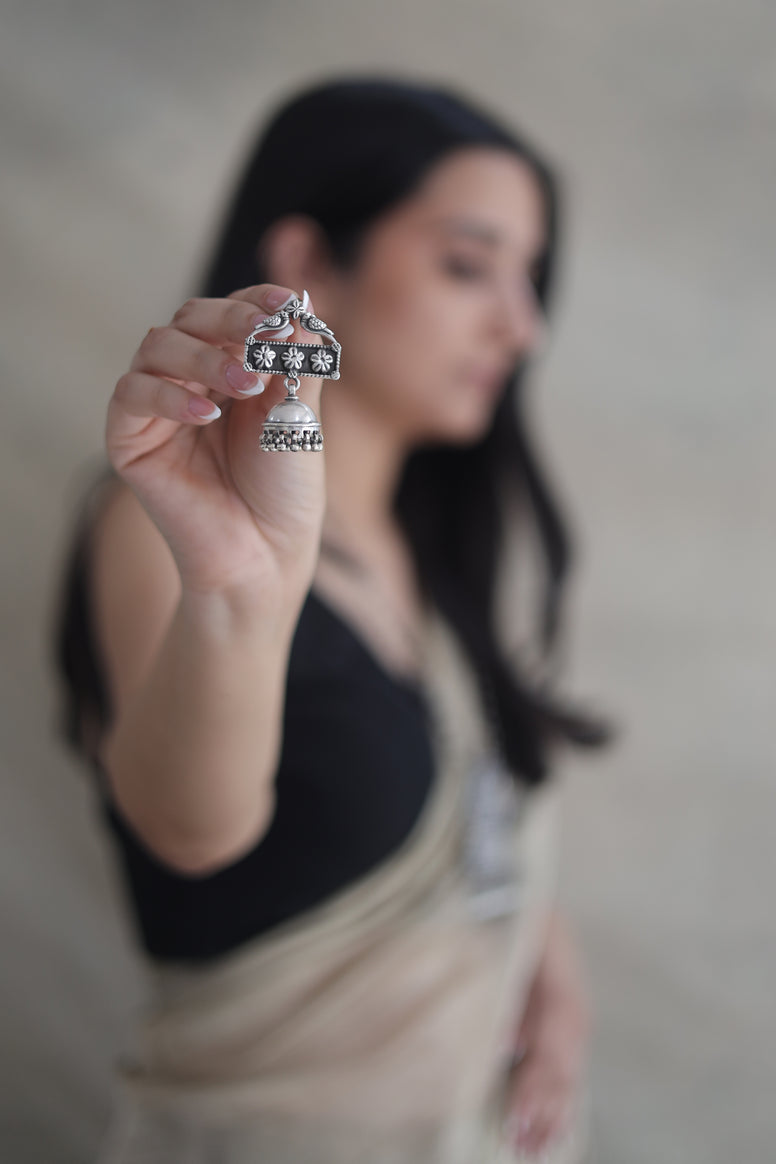 Handcrafted in 925 sterling silver and stamped for authenticity, the Aaranya Timeless Jhumki is a lyrical ode to nature and artistry.